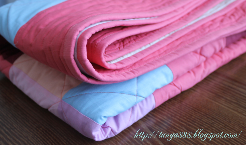 Насмотрелась в блогах на красивые вещи в технике Quilt, ну о-о-очень нравится! Захотела попробовать сшить одеяло для Лизы. У нее настало то время, когда дети ползают и большую часть времени проводят на полу.